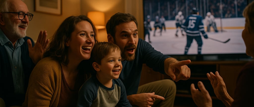 I can still feel it. Saturday night at the farm, lights low, the kettle starting to whistle. The game came on before the dishes were done. Grandpa in his brown recliner, aunts and uncles crowding the couch, cousins sitting on the floor. The farmhouse was full. Saturday was not just game night. It was the family gathering. The television pulled us together. Everyone talked at once, cheering and reacting and sharing every shot and every save. Nobody cared about numbers. We cared about each other. And when the Leafs scored, the whole farm shook.